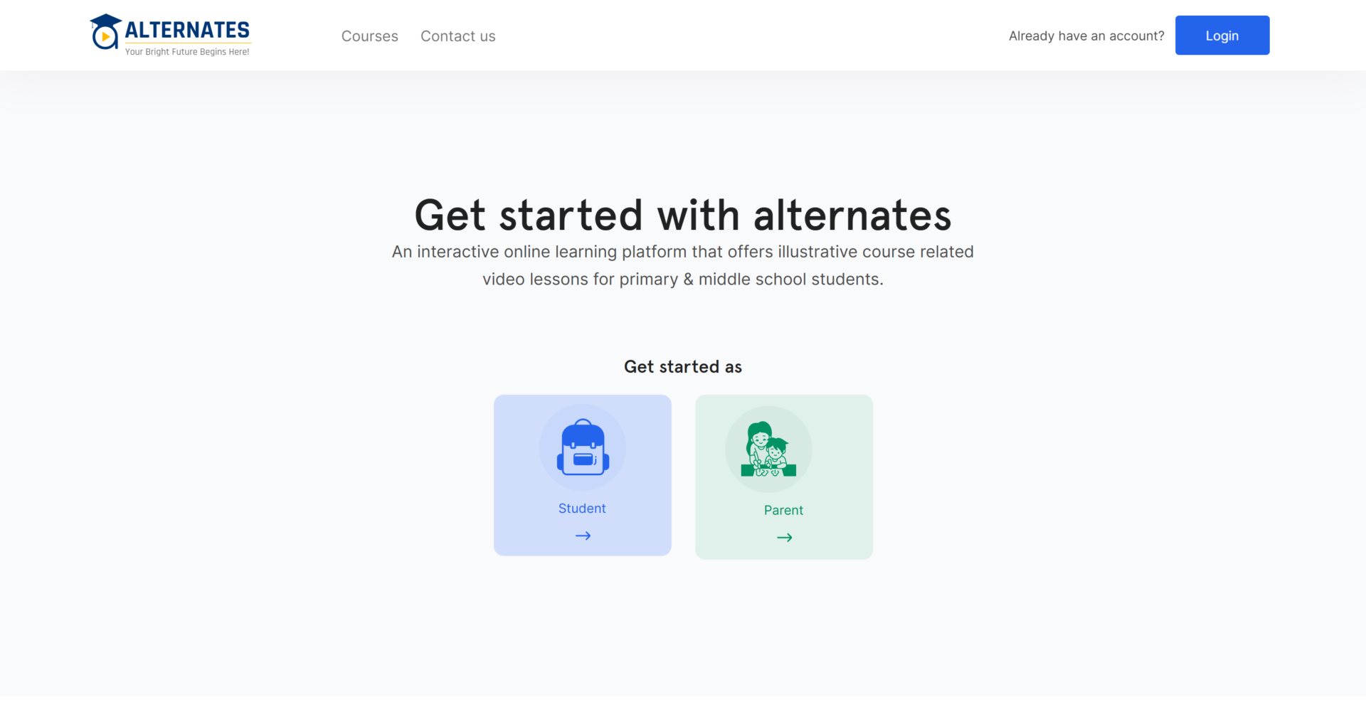 Alternates is a dynamic online education platform designed to make learning accessible, engaging, and effective for young students across Pakistan. Featuring over 2,000 studio-recorded video lessons, personalized study pacing, and customized assessments, the platform supports students through high-quality animated content tailored to their curriculum. With a mission to enhance learning through innovative methods, Alternates empowers schools and families to unlock every child's academic potential — all at no cost to registered schools.